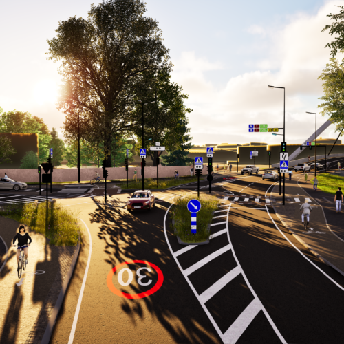 • Liikluskorralduse projekteerimine: valgusfoorid, kergliiklejatele suunatud teekattemärgised, uued liiklusmärgid, tõstetud ülekäigurajad